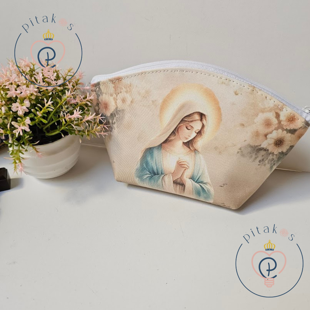Maria irá te acompanhar em seu dia a dia, utilize nossa belíssima modelo pastel para levar seus terços e itens pessoais. Espaçosa e elegante a escolha certa para você.